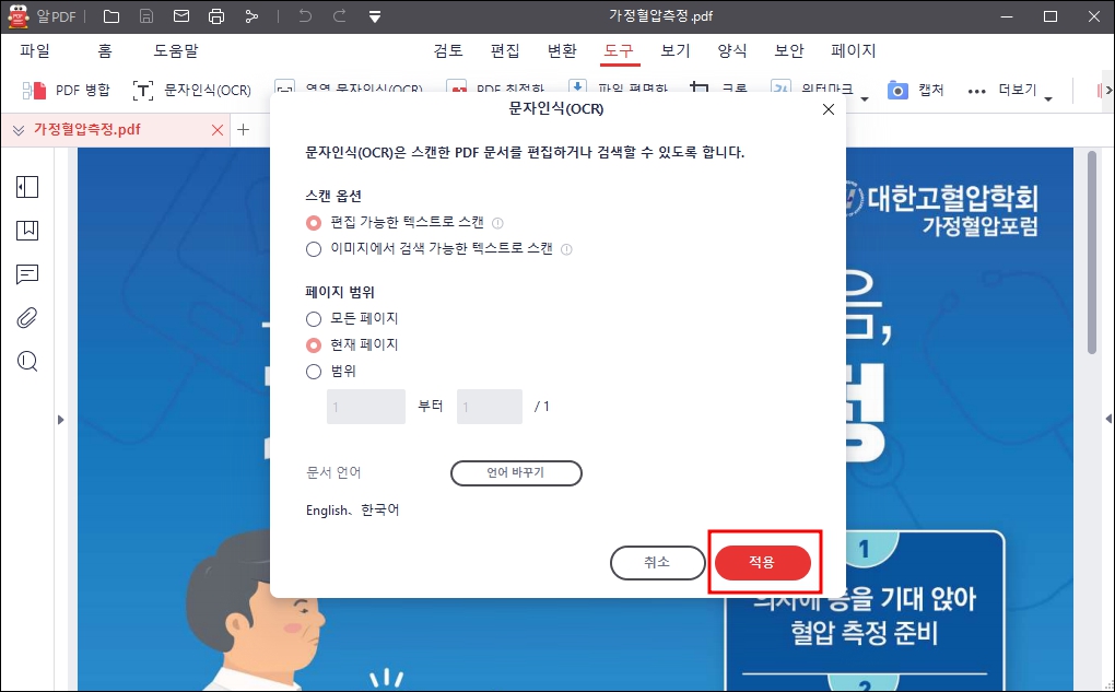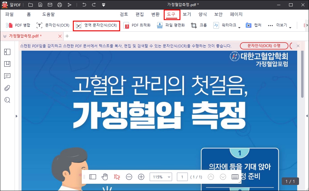 6) 이제 다시 도구에서 ocr 문자인식을 눌러 보세요.