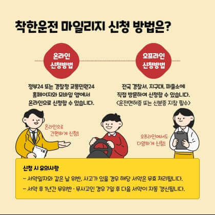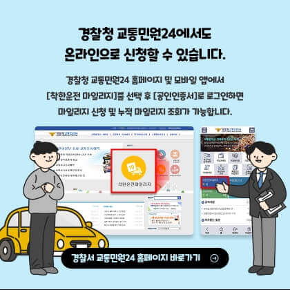 착한운전 마일리지 인터넷신청 방법 및 경찰서 방문 신청에 대해 정리해 보도록 하겠습니다. 차를 운전하다 보면 사고는 누구에게나 찾아올 수 있습니다. 벌점이 쌓이다 보면 불이익을 받으실 수도 있습니다.