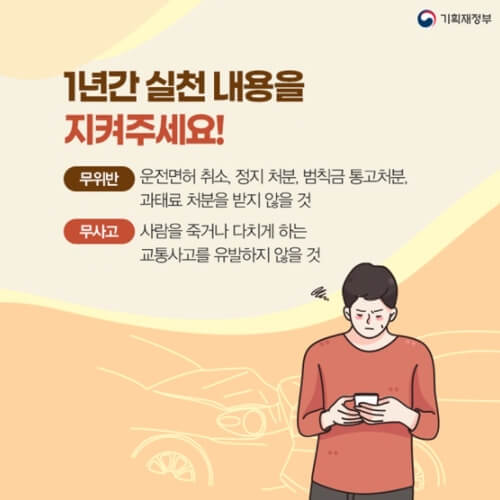 착한운전 마일리지 신청을 하신 후에 1년간 실천해야될 내용은 의외로 간단 합니다. 바로 무위반, 무사고 두가지 원칙 입니다. 아래의 내용을 확인하세요